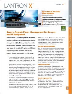 SECURELINX SLP ELIMINATES UNNECESSARY SERVICE TRIPS TO THE DATA CENTER BY ENABLING SYSTEM ADMINISTRATORS TO REMOTELY CONTROL THE POWER SUPPLY TO CRITICAL BUSINESS EQUIPMENT. IN THE EVENT OF A SERVER PROBLEM OR NONRESPONSIVE SYSTEM, INDIVIDUAL SERVERS CAN BE REBOOTED AND POWERED OFF AND ON. THIS IS ALSO A BENEFIT WHEN SERVER CONFIGURATION CHANGES REQUIRE POWER CYCLING FOR THE CHANGE TO TAKE EFFECT.